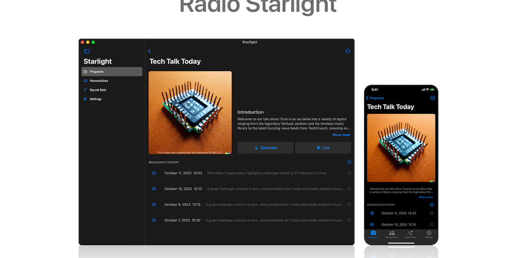 Radio Starlight - Your Generative Radio Station | Product Hunt