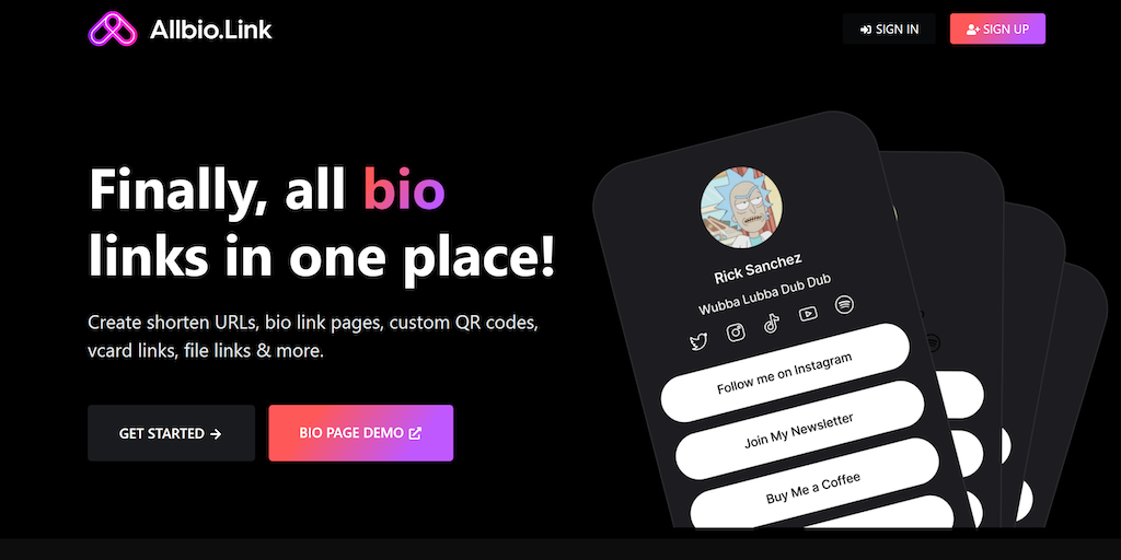 AllBio.link - links, shortener, bio link, linktree, allmylinks, qr code | Product Hunt