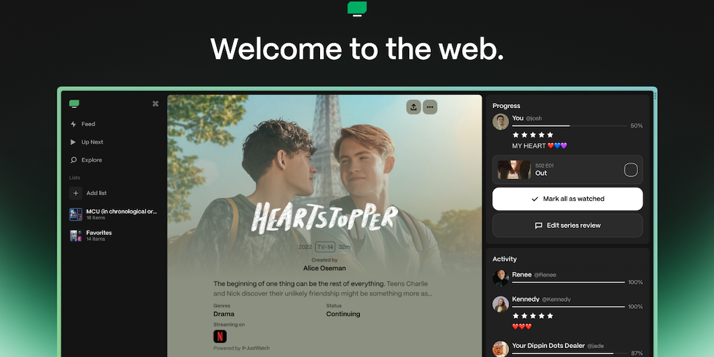 Marathon is the social network for avid television watchers. Track your progress through series and discuss with your friends along the way.