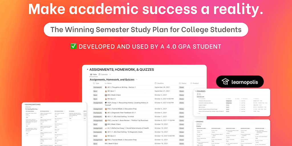 College Arsenal: A GPA 4.0 Toolkit - A study plan Notion to help achieve a successful semester | Product Hunt