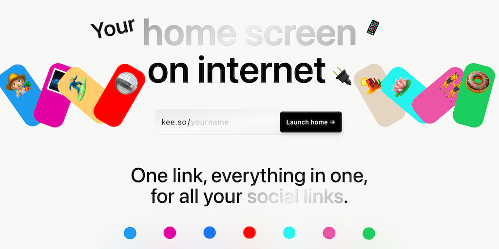 kee.so is a brand new "link in bio" solution that adopts a design similar to the home screen of a phone. kee.so is so flexible, powerful, striking design, and easy to use. It is the best solution for