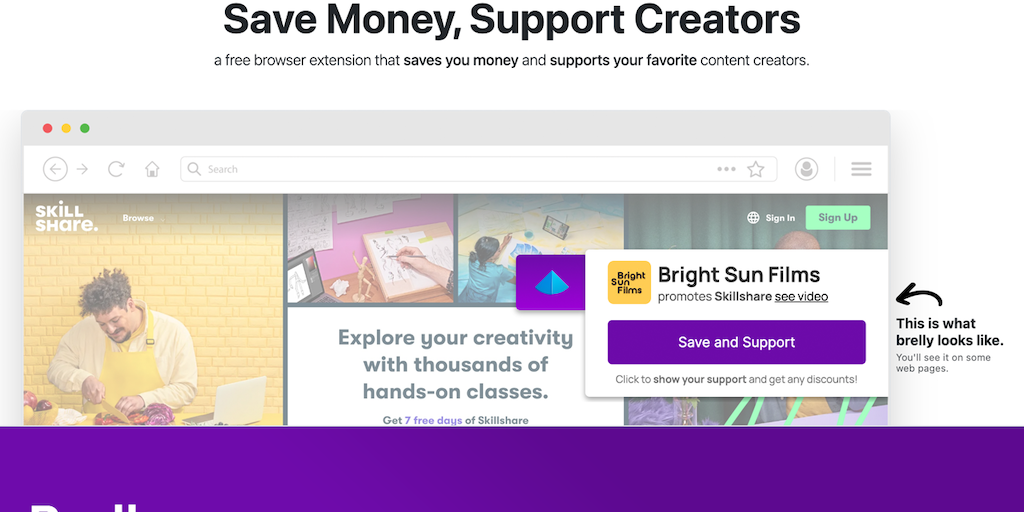 brelly is a free browser extension that saves you money and helps support your favorite content creators.