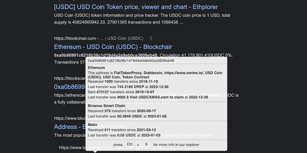 Blockchain Address Navigator allows you to get more information about any address on any webpage by just hovering over the address.