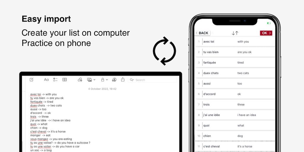 The application helps to remember new terms, vocabulary or anything you need to remember in 2 steps. 1. Create pair: terms and description 2. Practice