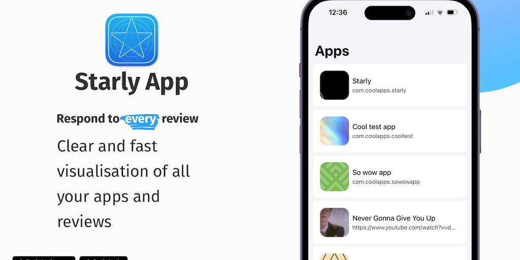 The Starly app is a project that will allow developers to easily manage reviews on the App Store. You will be able to respond to reviews, translate reviews into the desired language, filter and create