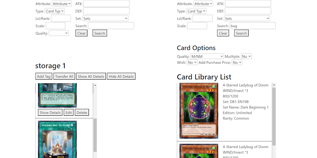 Web app that helps you keep track of your card collections so you can quickly build your decks, maintain and track your cards. Easliy helps you trade more and save you time in the long run. Using clic