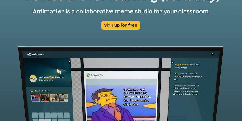 Antimatter Studios - A collaborative meme studio for your classroom | Product Hunt