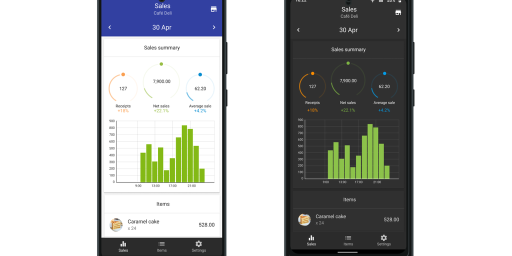 Loyverse Dashboard helps you instantly analyze your store’s sales and track inventory directly from your smartphone anytime, anywhere.
