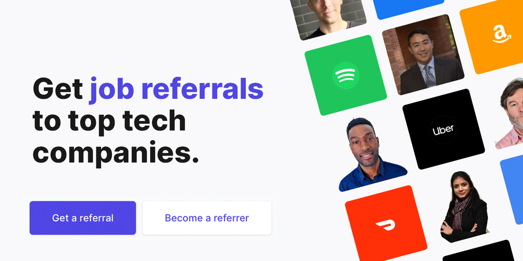 Land more interviews with job referrals from employees at Google, Meta, Amazon, and other top tech companies.