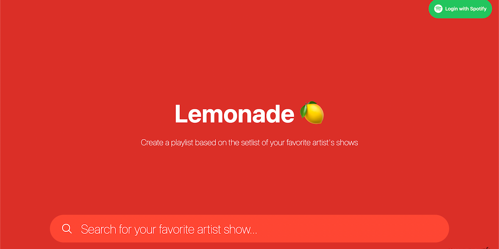 Lemonade helps you to create a playlist based on the setlist of your favorite artist's shows.