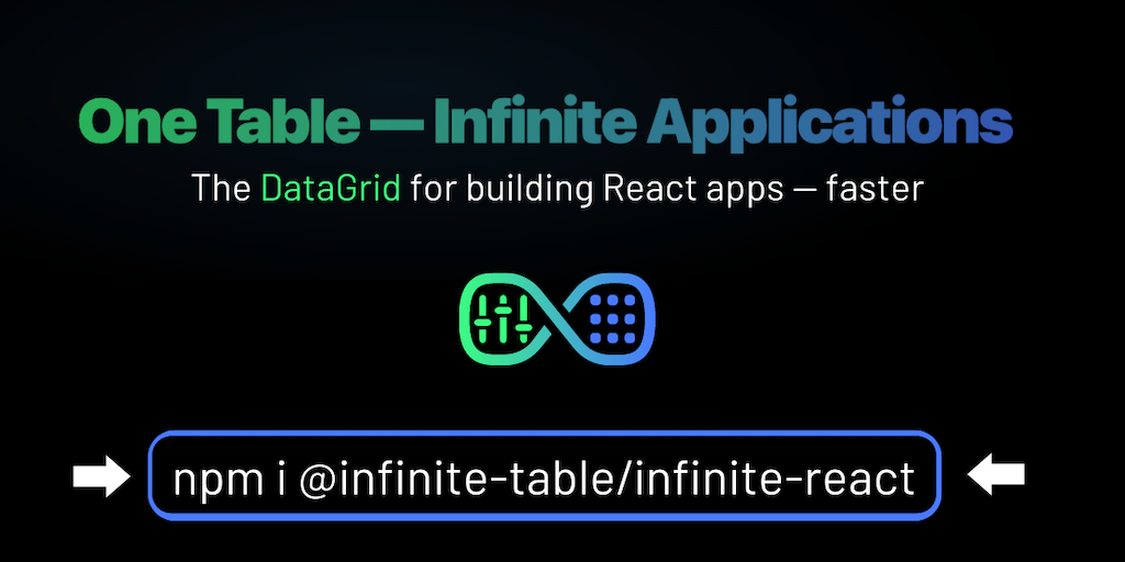 Infinite Table is a React DataGrid component for displaying tabular data. Gives you - sorting - row grouping - pivoting - aggregations - live pagination - lazy loading - keyboard navigation - fixed an