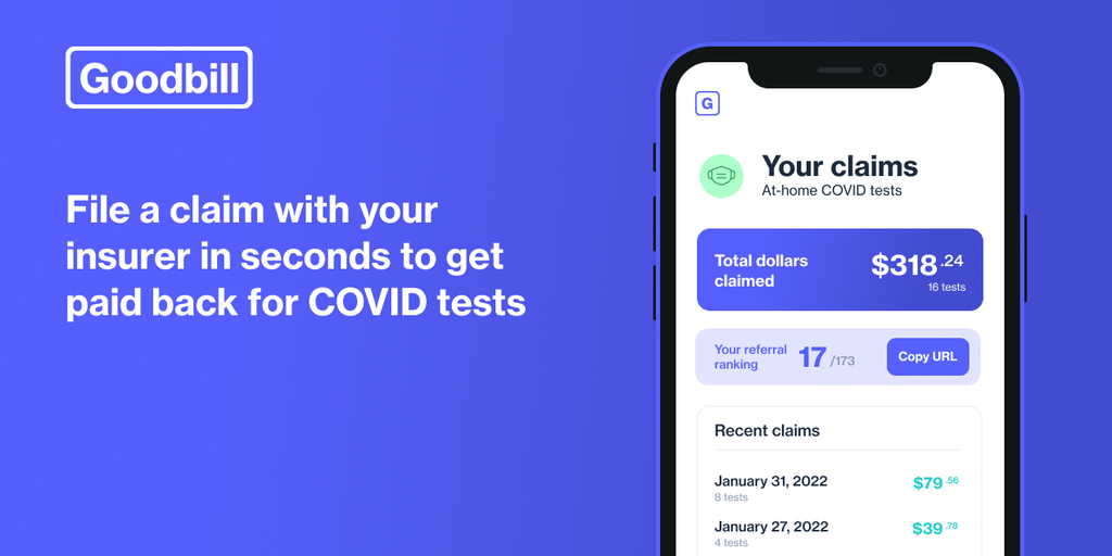 COVID Test Reimbursements by Goodbill - Get reimbursed for at-home COVID tests in just a few taps | Product Hunt