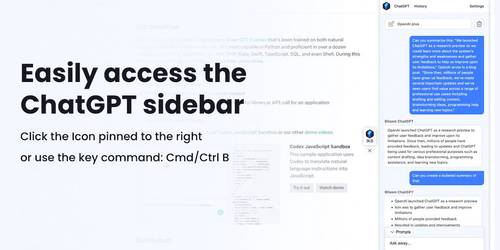 Access full ChatGPT features on every website with Blixem, including the ability to continue conversations across tabs.