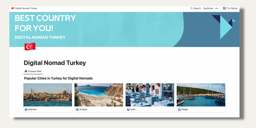 Digital Nomad Turkey - Notion Guide for digital nomads who want to visit Turkey | Product Hunt