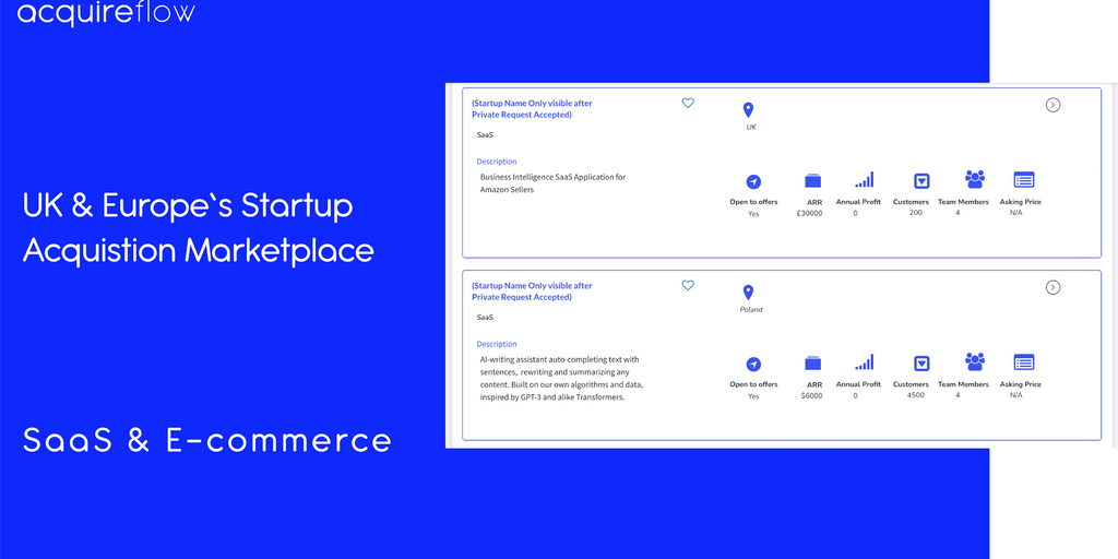 AcquireFlow - UK & Europe's startup acquisition marketplace for SaaS/ECOM | Product Hunt
