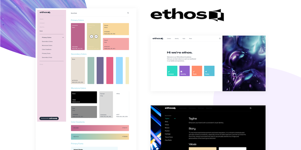 With Ethos it's easy to create a beautiful and organized online Brand Guideline that becomes the single source of all brand content.