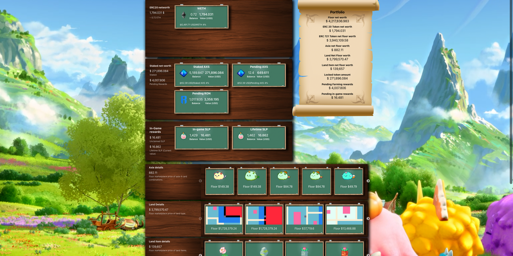 This project tracks user assets and transactions across the Axie Infinity ecosystem and provides a summary of net user asset floor valuation and transaction history in a simplified viewable and downlo