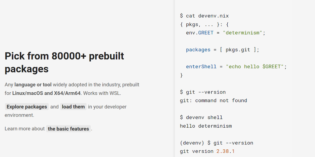Fast, Declarative, Reproducible, and Composable Developer Environments