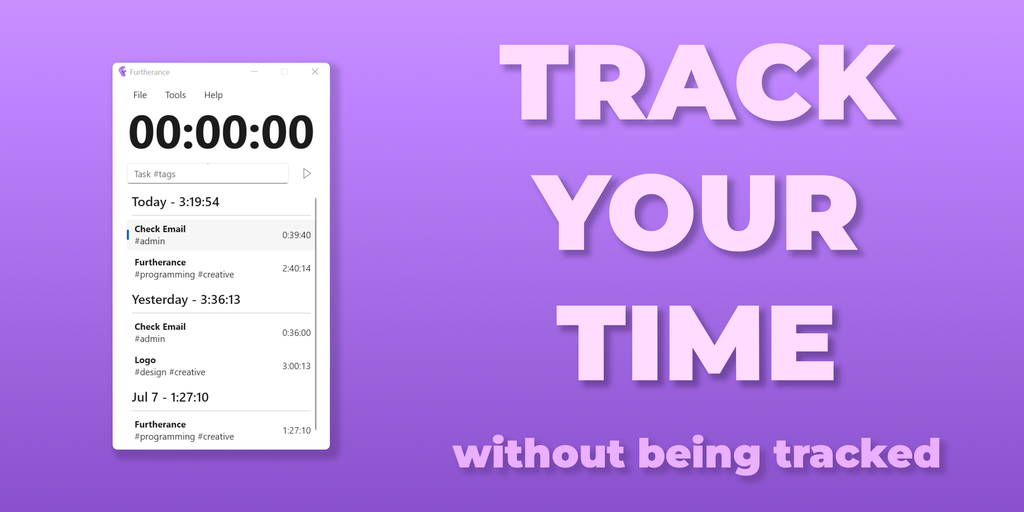 Furtherance allows you to track tasks you are working on and provides you with a detailed report of your time. Your data is never seen or used by us or anyone else. Increase your productivity by findi