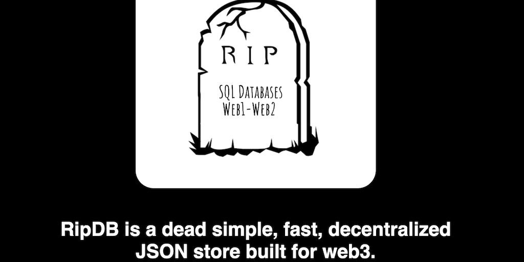 RipDB is the fastest way to store JSON in a decentralized way. It can be used as a lightweight, decentralized alternative to traditional SQL databases. Under the hood, RIP just Redis backed by IPFS (d
