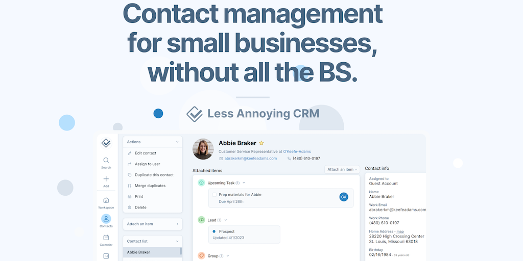 Less Annoying CRM - Contact manager for small businesses, now with a new design | Product Hunt