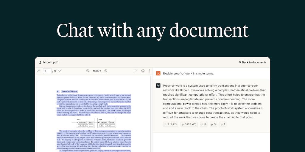 From legal agreements to financial reports, PDF.ai gives your documents some AI superpowers. You can ask questions, get summaries, find information, and more.