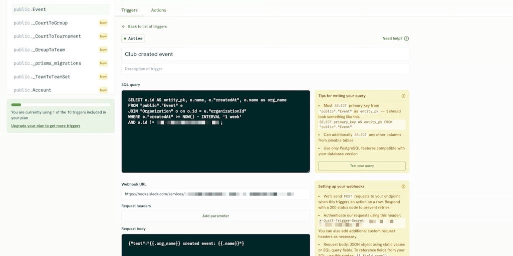 Quailrunner - Low-code webhook initiation using your Postgres database | Product Hunt