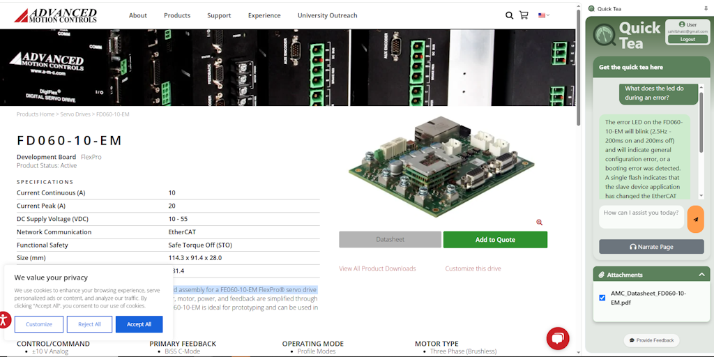Quick Tea is an AI browser extension answering questions about your open page, highlighting answers, narrating articles aloud, searching attached PDFs, and comparing multiple tabs. Organize bookmarks