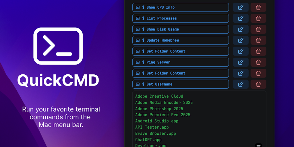 QuickCMD: Your favorite commands now in your MacOS menu bar | Product Hunt