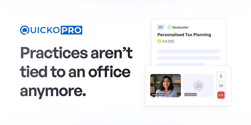 An AI-first platform, Quicko Pro helps professionals run their advisory online. With customisable storefront, integrated payments, and real-time analytics, it simplifies operations and improves custom