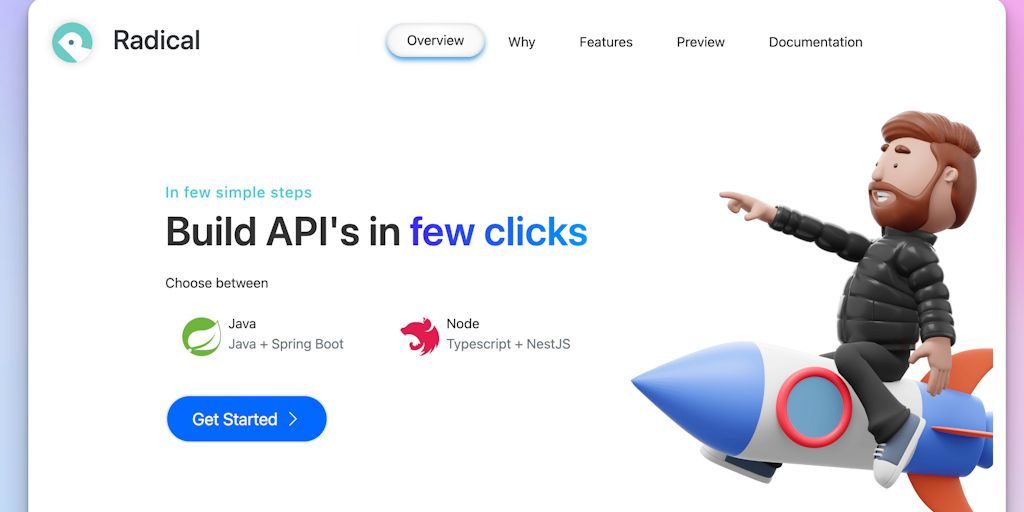 Radical.sh - Generate Spring Boot / Nest JS API's In Minutes | Product Hunt