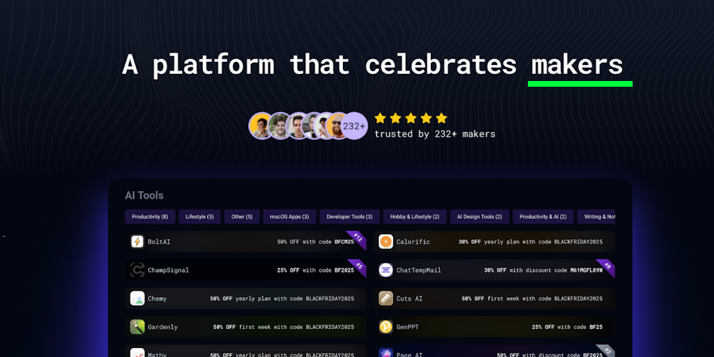 Discover indie products you'll love & get great deals on this open-source, community-driven platform. All apps are categorized and you get great recommendations while you browse! Or submit your deal,