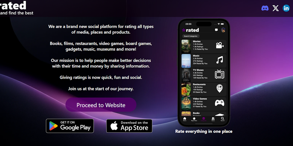 Rated - Data-driven social rating platform for media, places + more | Product Hunt