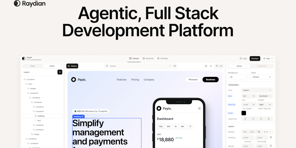 Raydian: The next frontier of AI product builders | Product Hunt