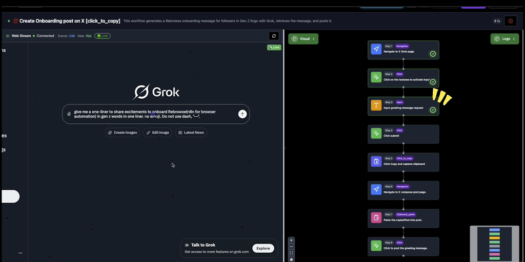 Turn scree recording into agentic browser workflows. Think this as n8n for deterministic browser automation. You can run 10x faster, deterministic, multiple flows - in one click. 🤯