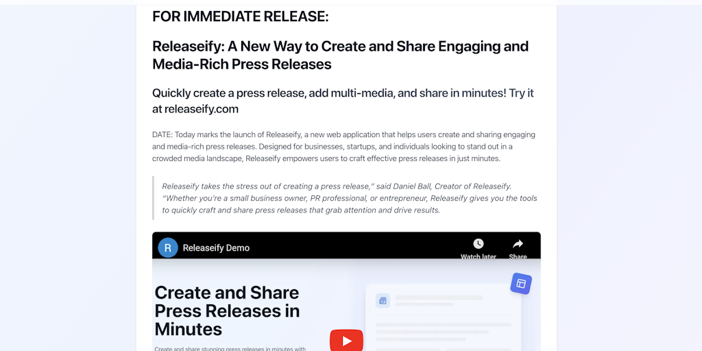 Releaseify - Easily create and share eye-grabbing press releases | Product Hunt