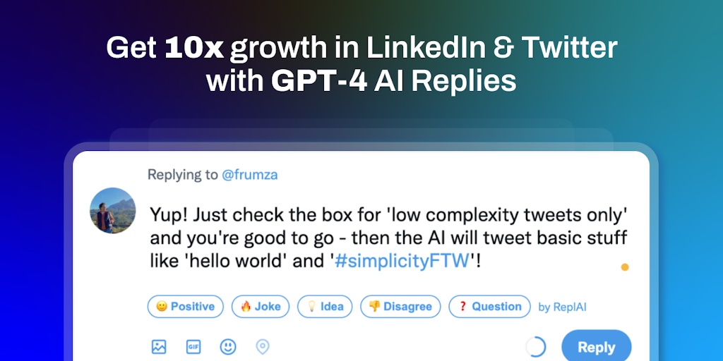 Replai - GPT-4 replies for 10x growth for LinkedIn & Twitter | Product Hunt