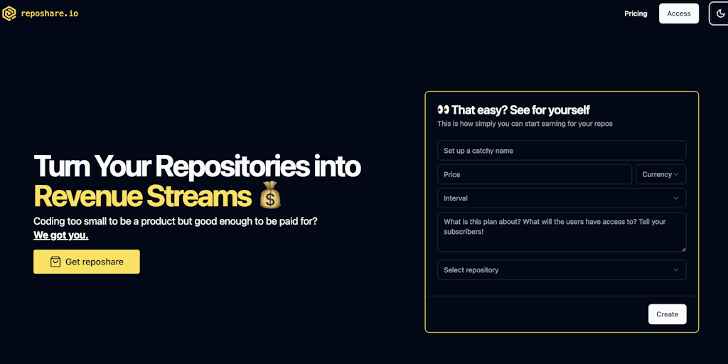 reposhare - Turn your repositories into revenue streams | Product Hunt