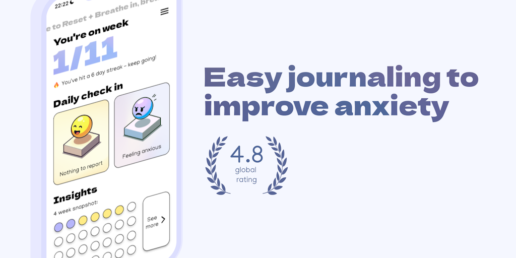 Reduce anxiety through just 5 minutes a day of guided journaling. Reset uses AI to help you regularly re-evaluate anxious thoughts using evidence-based CBT techniques, so you can keep a balanced persp