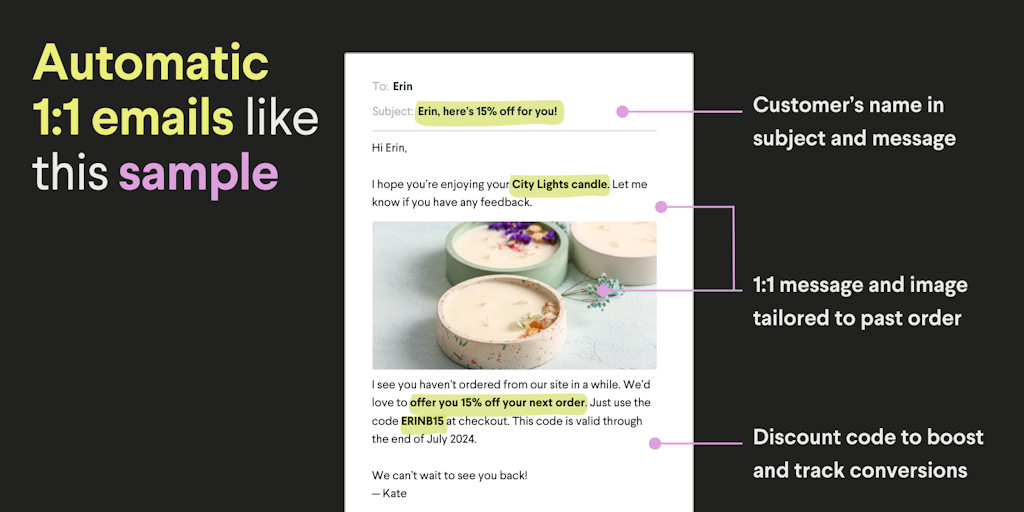 Retain AI by Chatdesk is a fully automated way for ecommerce brands on Shopify to turn one-time shoppers into repeat customers. 90 days after a customer purchases, Retain AI generates and sends person