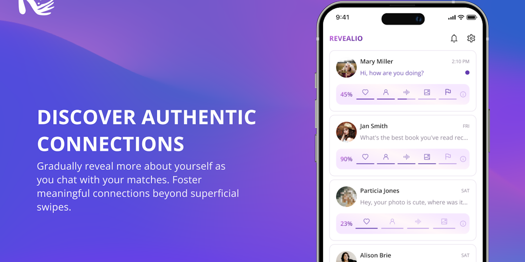 Revealio the app where conversations reveal new layers. No names, no pics—just engaging chats that unfold your match's true personality. Unlock details phase-by-phase. Privacy-first, real connections.