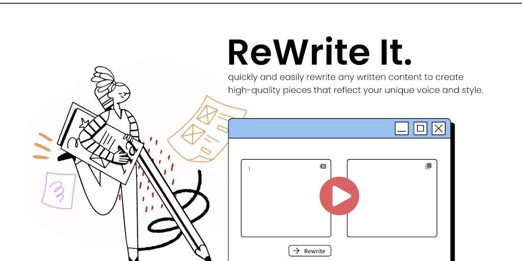 ReWriteIt.ai is a tool that helps users quickly and easily rewrite any written content to create high-quality pieces that reflect their unique voice and style.