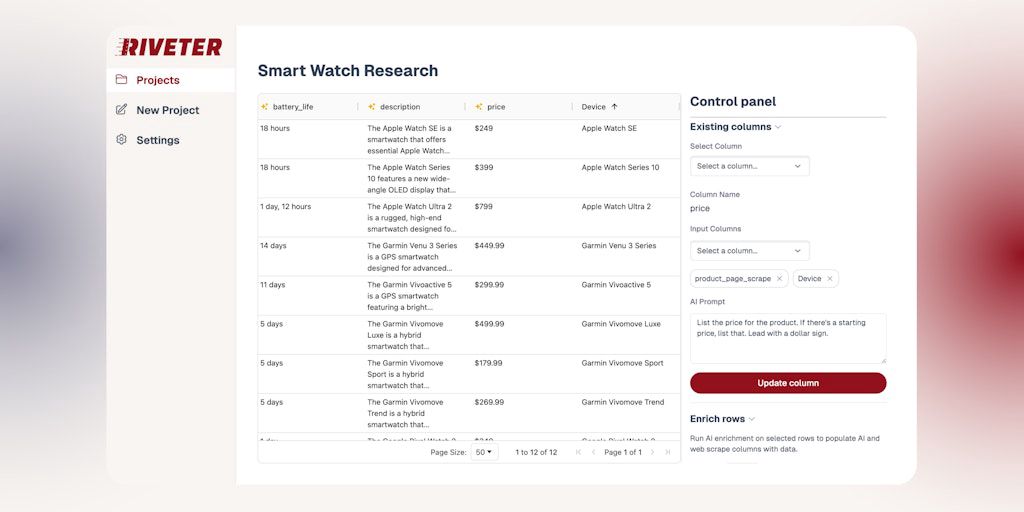 Riveter - AI for spreadsheets - replace hours of manual work | Product Hunt