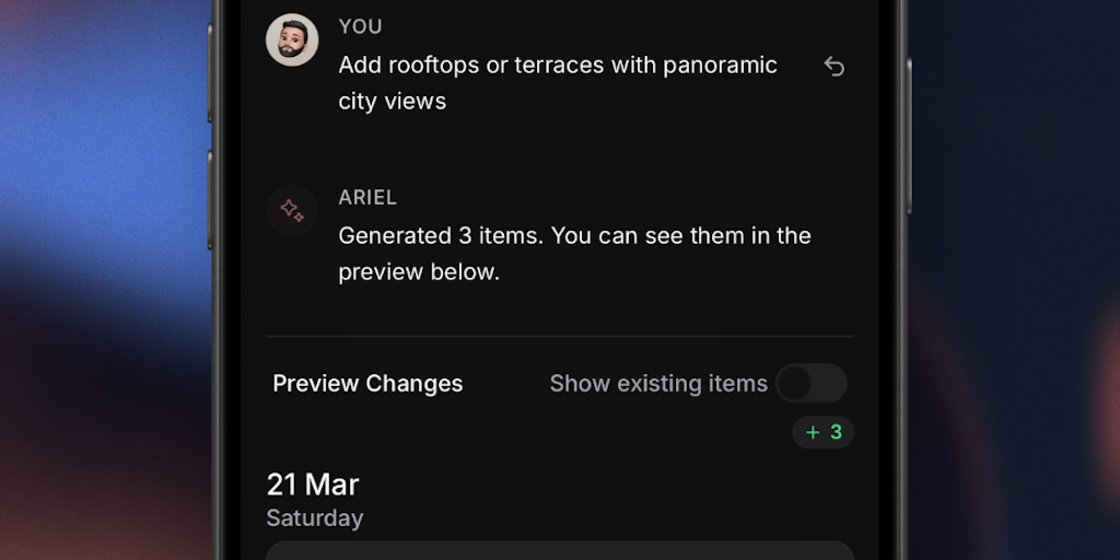 Your inbox is not an itinerary. Forward your bookings and Roamcalm transforms them into a clean, offline-ready timeline. Create itineraries, share it with your travel companions, or even throw in your