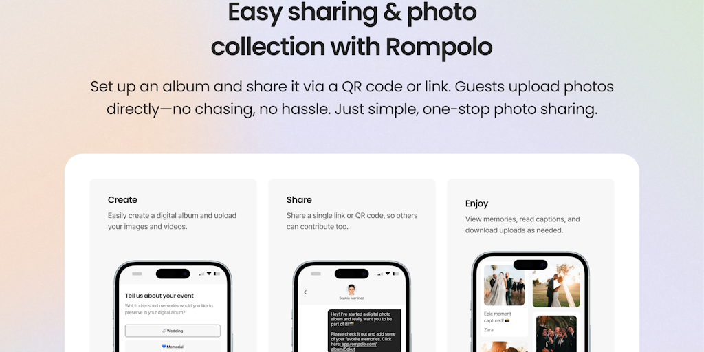 Rompolo - Create & share digital photo albums with a QR code/link | Product Hunt