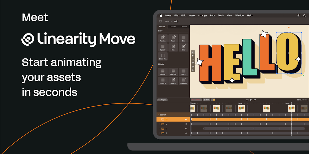 Create captivating marketing animations that convert with Linearity Move. This intuitive motion graphics tool streamlines your workflow and brings your static assets to life in seconds.