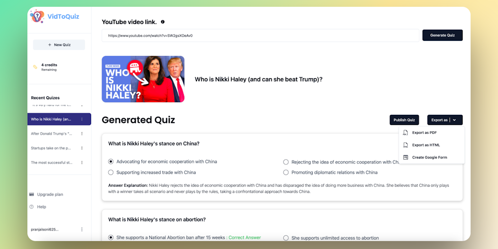 VidtoQuiz - Generate quizzes from videos and export as google form | Product Hunt