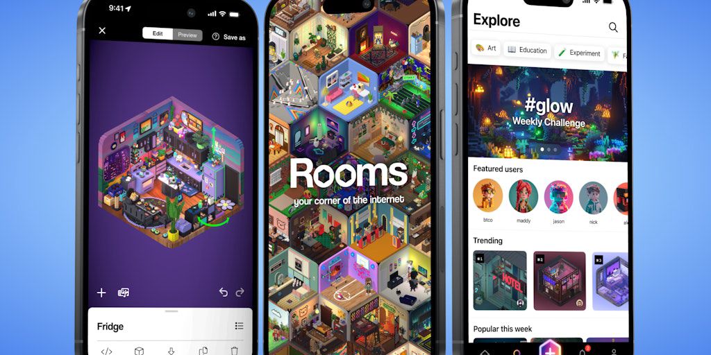 Rooms lets you create interactive, 3D rooms. Every thing is editable and scriptable. Rooms 2.0 features include faster loading for larger rooms, room categories, an Explore page, badges, a new honeyco