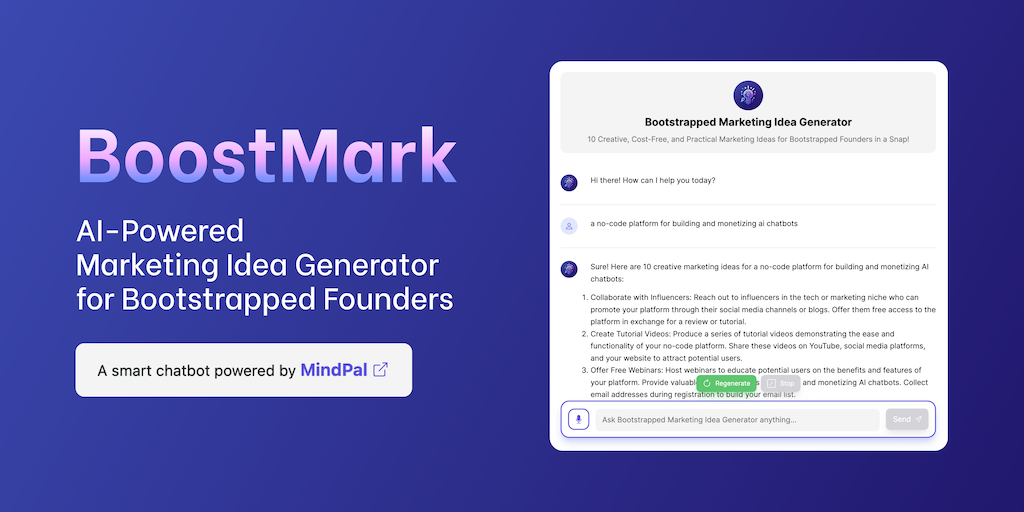 boostmark - Your AI Assistant to Generate Bootstrapped Marketing Ideas | Product Hunt