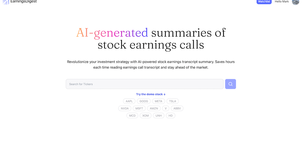 EarningsDigest - turn stock earnings calls into tweet summaries with AI | Product Hunt
